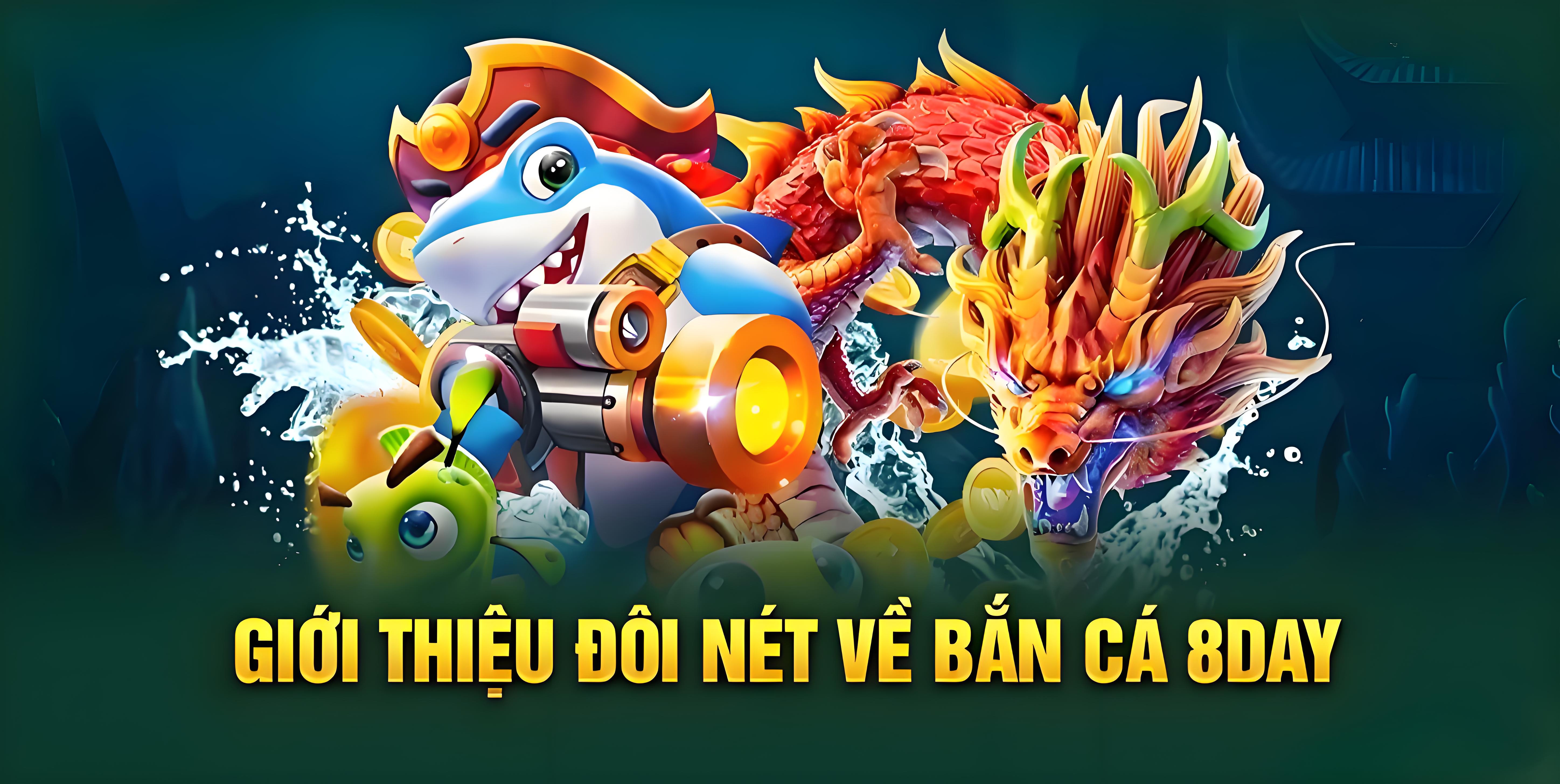 Danh mục bắn cá của cổng game 8Day chính thức ra mắt vào năm 2018 và nhanh chóng gây sốt với lượng truy cập khổng lồ. Điểm mạnh của các trò chơi trong danh mục này là tính giải trí cao, thu hút đông đảo người chơi. Nhiệm vụ của bet thủ là bắn hạ các mục tiêu xuất hiện trên màn hình, mỗi mục tiêu sẽ có hệ số thưởng riêng do nhà cái quy định. Tiền thưởng sẽ được tính dựa trên mức cược mà người chơi đã chọn.
